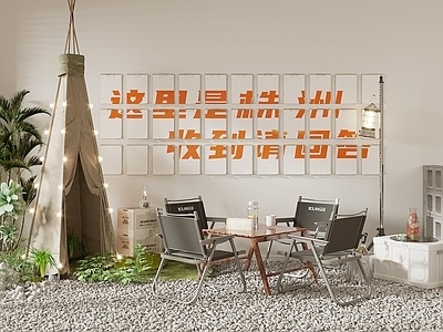 现代露营风咖啡厅休息区