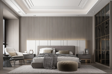 现代轻奢卧室双人床,休闲椅