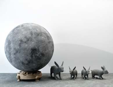 现代月球 玉兔 兔子石头 雕塑 (2)
