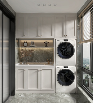 现代阳台 洗衣机 台盆 花瓶摆件 (1)