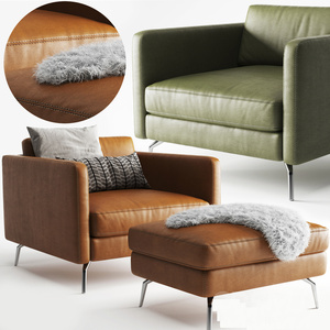 现代皮革单人沙发脚蹬3D模型