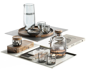 桌面摆件 茶盘书本 手机,玻璃水杯,3d模型