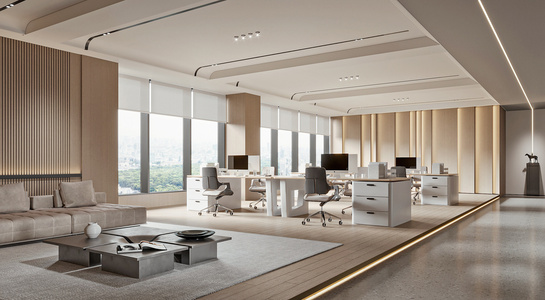 奶油风公共办公室 办公区