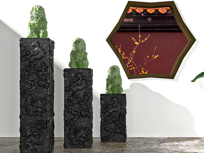 新中式玉石拴马桩,石狮子摆台摆件雕塑