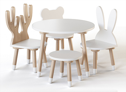 儿童活动室 培训机构,异形儿童桌椅椅子书柜su模型
