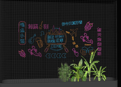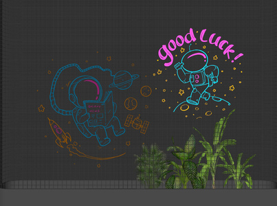 现代太空人霓虹灯,宇航员装饰灯SU模型