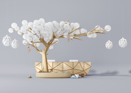 北欧现代树形儿童区接待台服务台,树造型