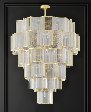 现代金属网格多层水晶吊灯