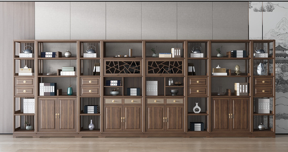 新中式古典实木书柜)