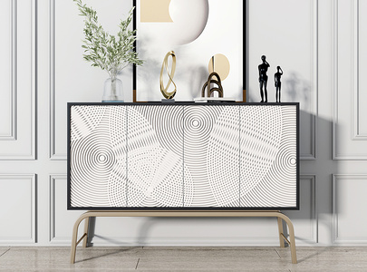 现代边柜,花瓶摆件