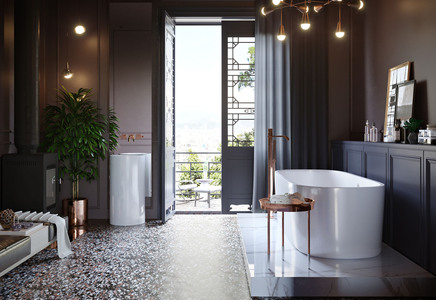 现代新中式卫生间,浴缸