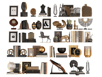 现代摆件组合_雕塑_书本_装饰品3D模型