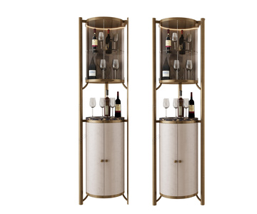 现代酒柜圆柱形酒柜酒瓶子红酒高脚杯3D模型