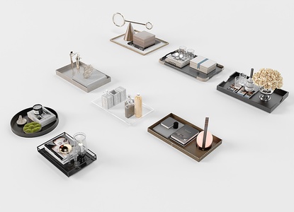 现代托盘摆件苔藓书籍书本酒店用品装饰组合3D模型