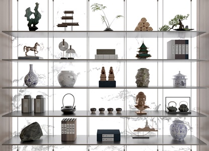 现代新中式雕塑摆件_饰品摆件组合3D模型