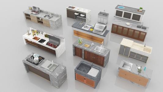 现代其他户外家具_庭院户外洗手手池3D模型