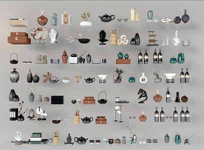 新中式装饰品摆件组合3D模