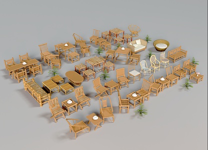 北欧藤编户外椅竹木椅子竹子椅子3D模型