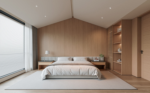现代客房_双人床_原木客房日式客房双人床3D模型