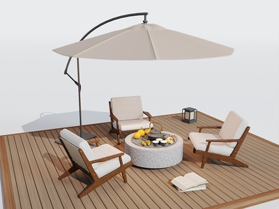 现代户外桌椅_休闲椅_洽谈桌椅_户外椅_户外餐桌_遮阳伞3D模型