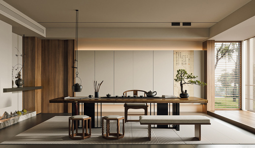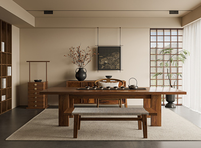现代新中式罗马帘_布帘_罗马帘3D模型