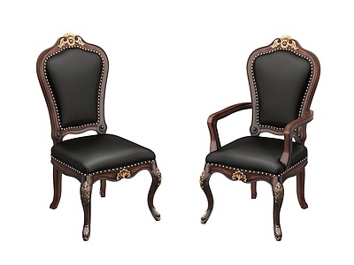 美式雕花靠背椅3d模型