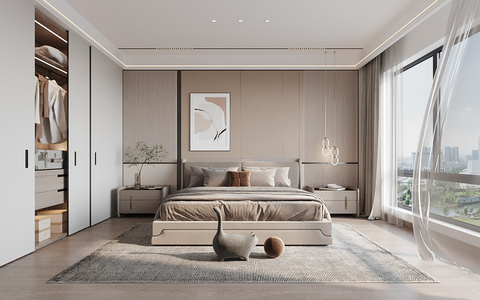 现代卧室,双人床,床头柜