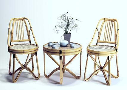 新中式竹编休闲茶桌椅