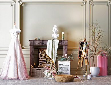 现代鲜花 壁炉 婚纱 摆件 美陈 装饰品