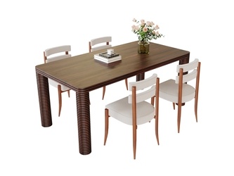 复古中古餐桌椅_四人餐桌椅SU模型