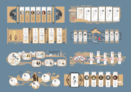 新中式学校文化墙SU模型