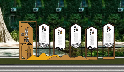 新中式社区宣传栏SU模型