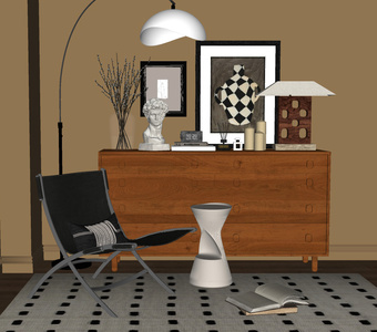 现代中古风边柜SU模型