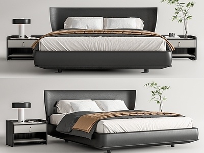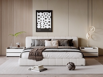 现代双人床,床头柜SU模型