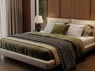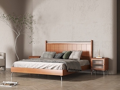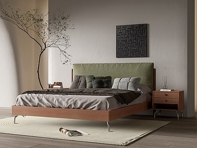 侘寂中古双人床SU模型