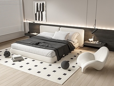 现代双人床,床头柜,休闲椅SU模型