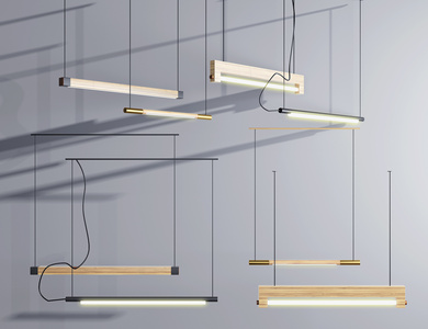 现代实木办公条形吊灯