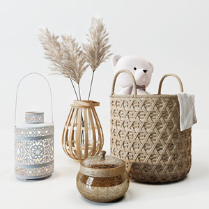 北欧干芦苇竹编花瓶竹篓摆件