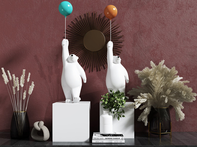 现代北极熊雕塑,干花,花瓶摆件