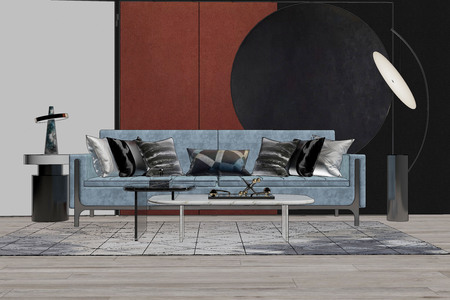 176新中式现代沙发茶几组合,落地灯,背景墙,艺术品2