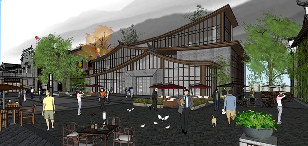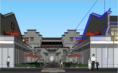 64中式商业综合体广场 新中式度假宾馆酒店 新中式图书馆 徽派建筑商业街区 四合院 新中式商业景点 度假小镇 中式商业街 步行街 商业广场