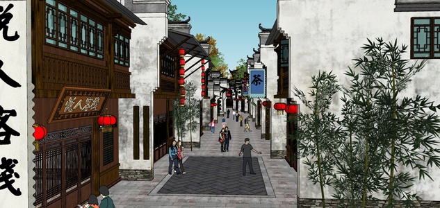 193古建中式商业街 古建筑风格景观 古镇古街 江南古代小镇 徽派建筑 马头墙 酒楼茶馆 民宿酒店 客栈 步行街