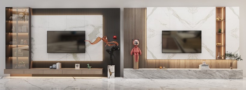 现代岩板电视墙