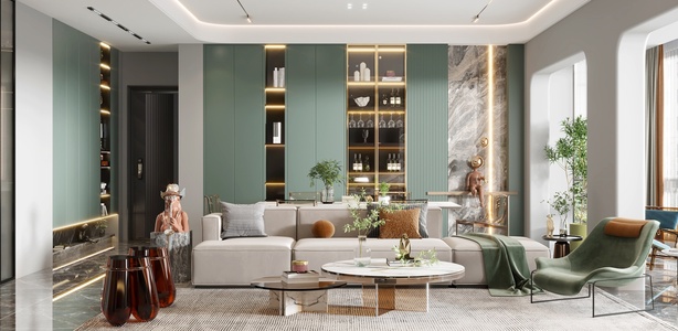04-现代客餐厅,客厅沙发茶几