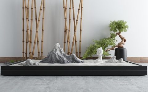 日本日式新中式枯山水,景观造景,石头,竹竿