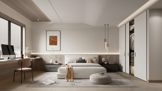 现代卧室,双人床