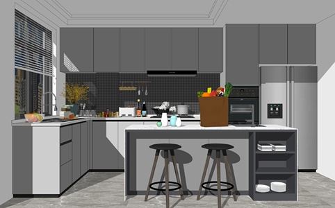 现代简约厨房冰箱吧台厨具组合