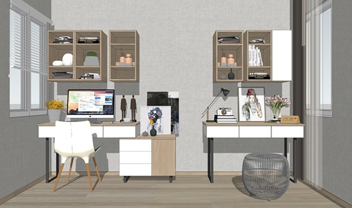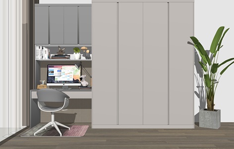 北欧平开门衣柜书桌椅组合SU模型