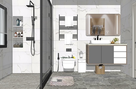 北欧风格卫生间洗手台马桶淋浴花洒组合