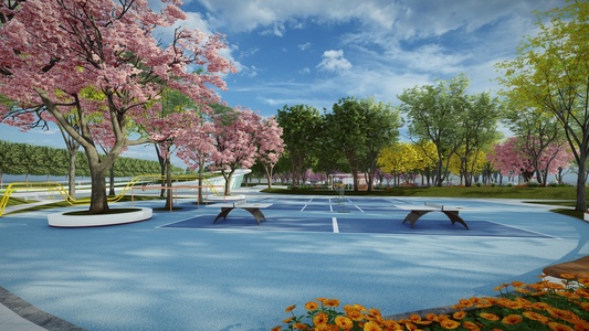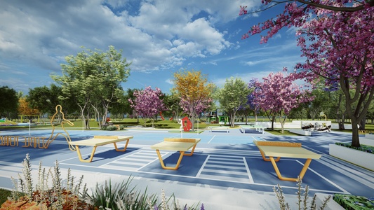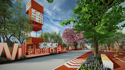 现代市政体育运动公园沿街市民健身广场景观街头口袋景观带公园 su模型